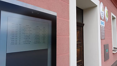 Z nekaj malega iznajdljivosti je razpored tekem FC Libinky možno poiskati tudi na zaslonu občinske stavbe v Polepyh (na sliki levo).
